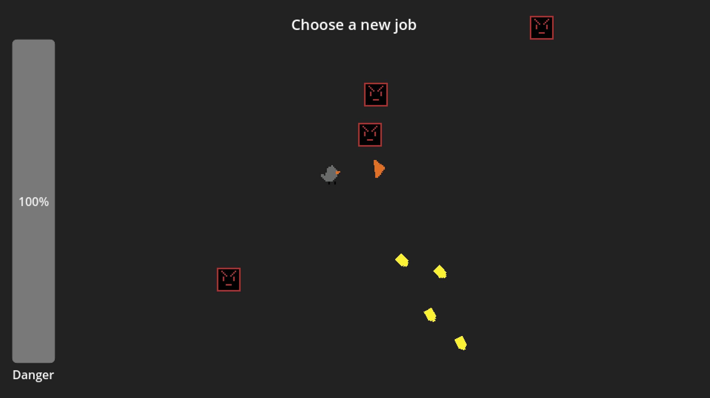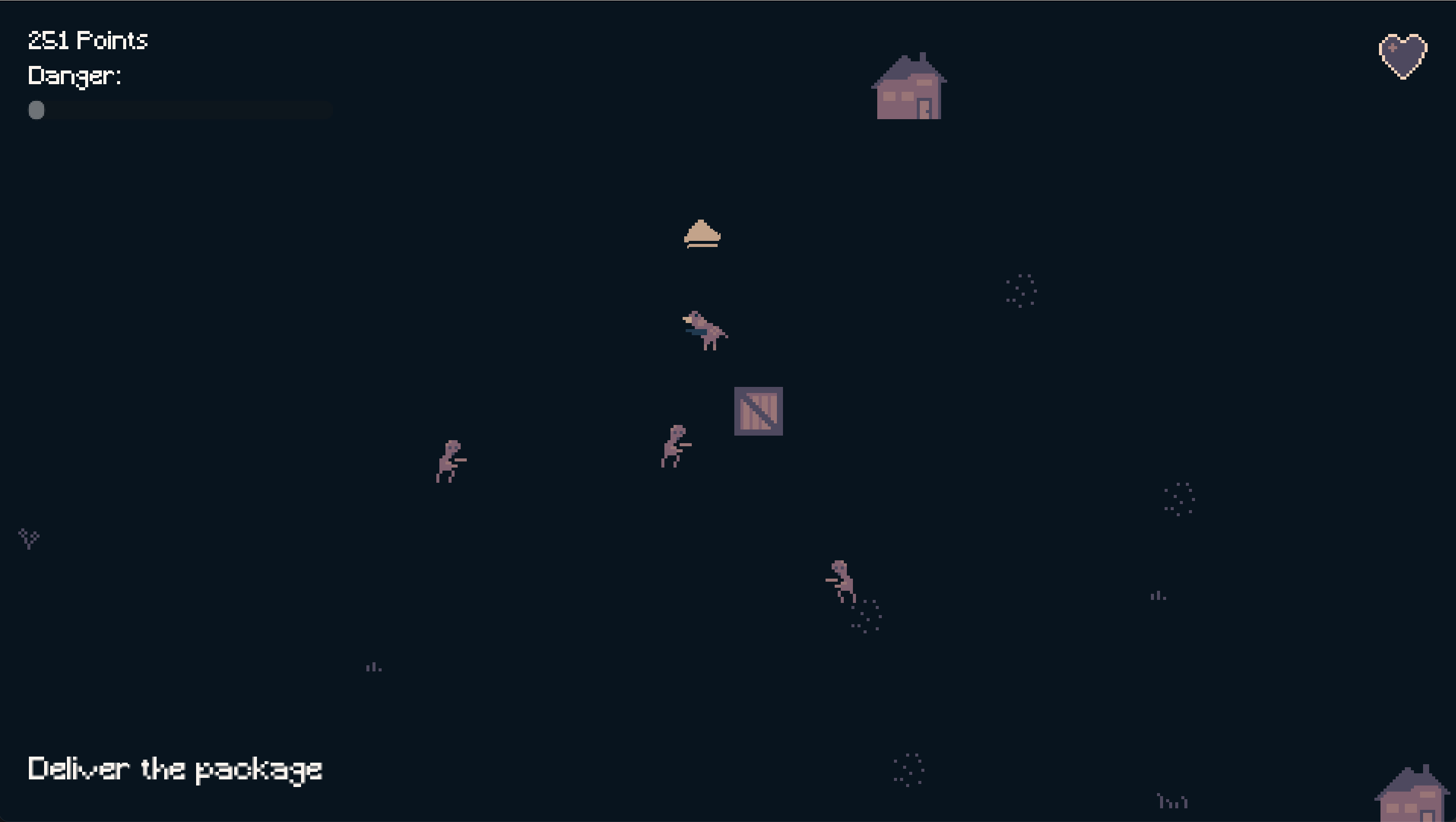 This years theme was delivery. I had some trouble coming up with ideas that felt fun and fit the theme, but after some tinkering I landed on my final idea: A pidgeon that needs to deliver packages in a village. That village is under attack by monsters, so you need to protect yourself with a gun. The more points you score, the more monsters will spawn, forcing you to be careful and also upgrade your weapon.